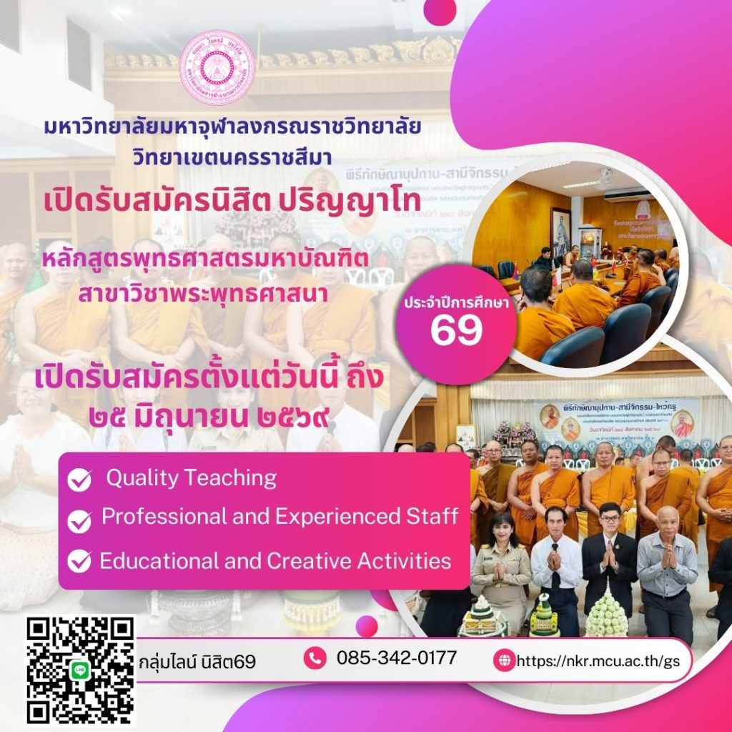 📌📌!! สมัครเรียนป.โท พุทธ มจร.โคราช ปี69