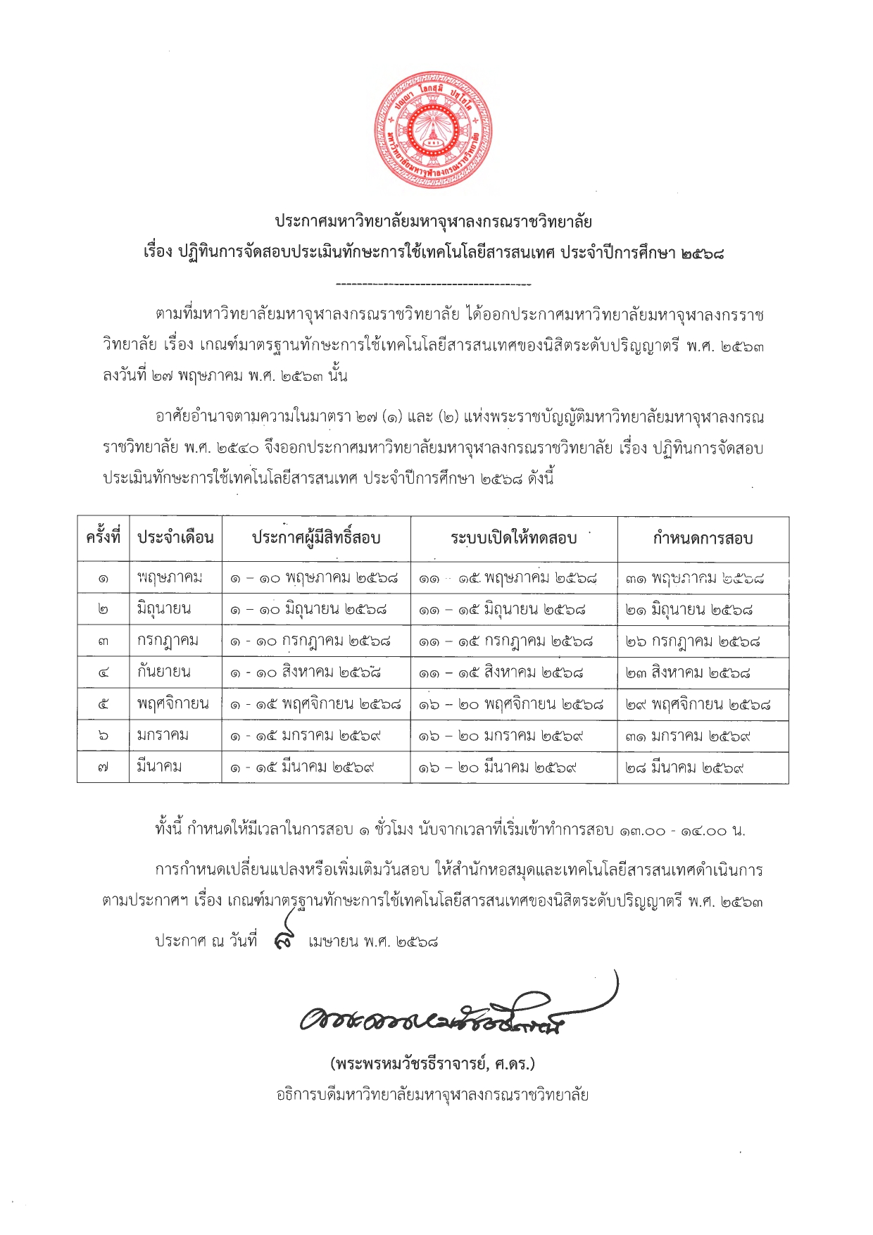 001 ปฏิทินจัดสอบ it sklii 2568_page-0001
