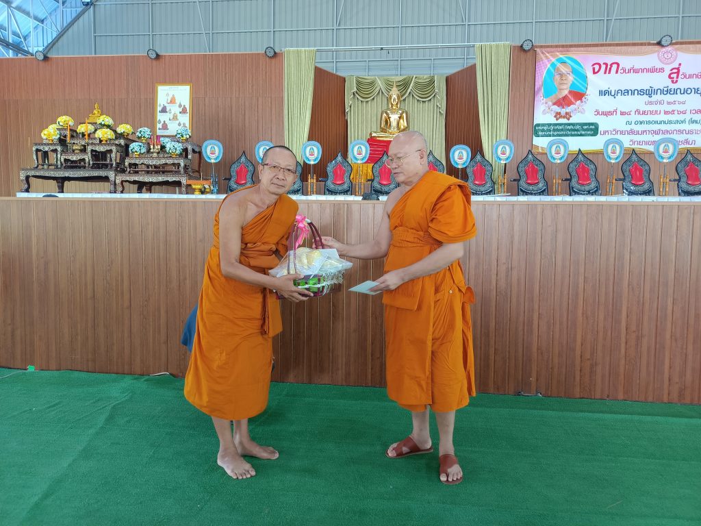 มหาวิทยาลัยมหาจุฬาลงกรณราชวิทยาลัย วิทยาเขตนครราชสีมา ได้จัดพิธีทักษิณานุปทานและพิธีเชิดชูเกียรติแก่บุคลากรผู้เกษียณอายุราชการ ๒ รูป / คน คือ