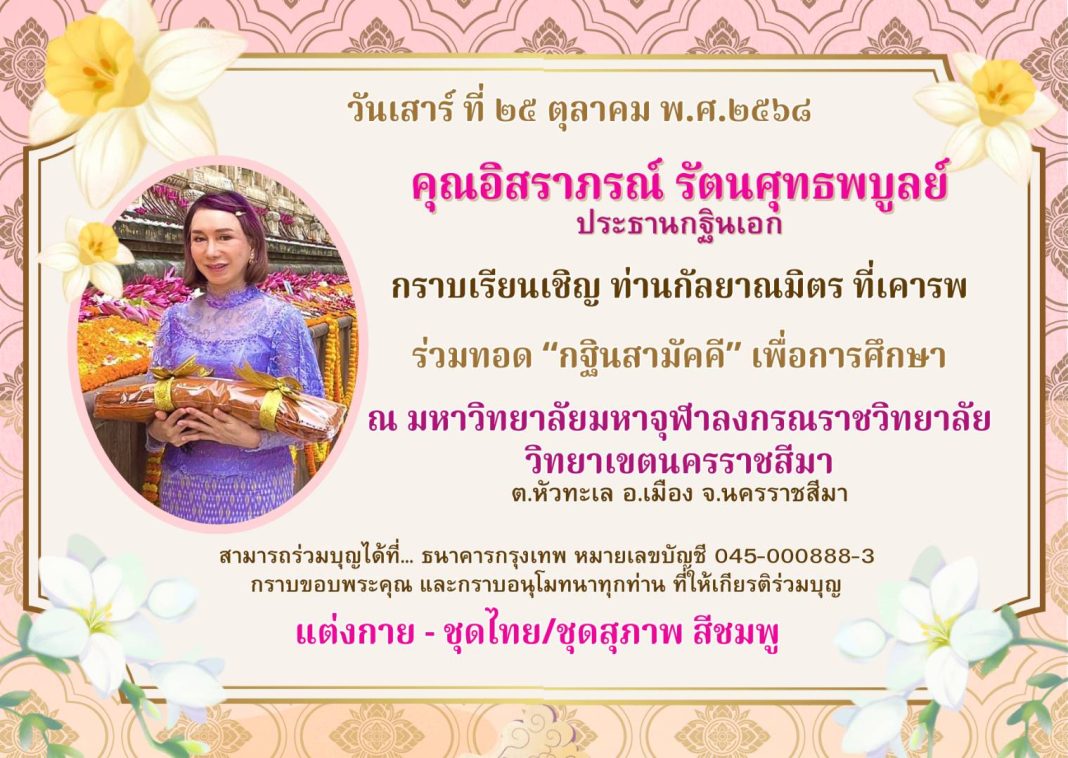 “กฐินสามัคคี” เพื่อการศึกษา วันเสาร์ ที่ ๒๕ ตุลาคม พ.ศ.๒๕๖๘
