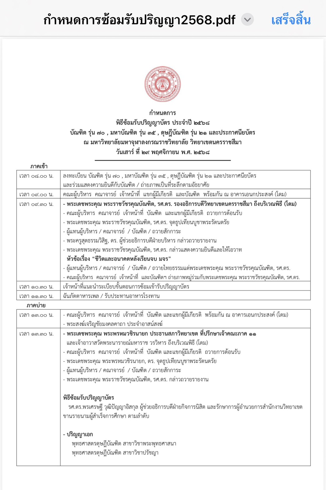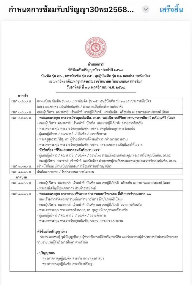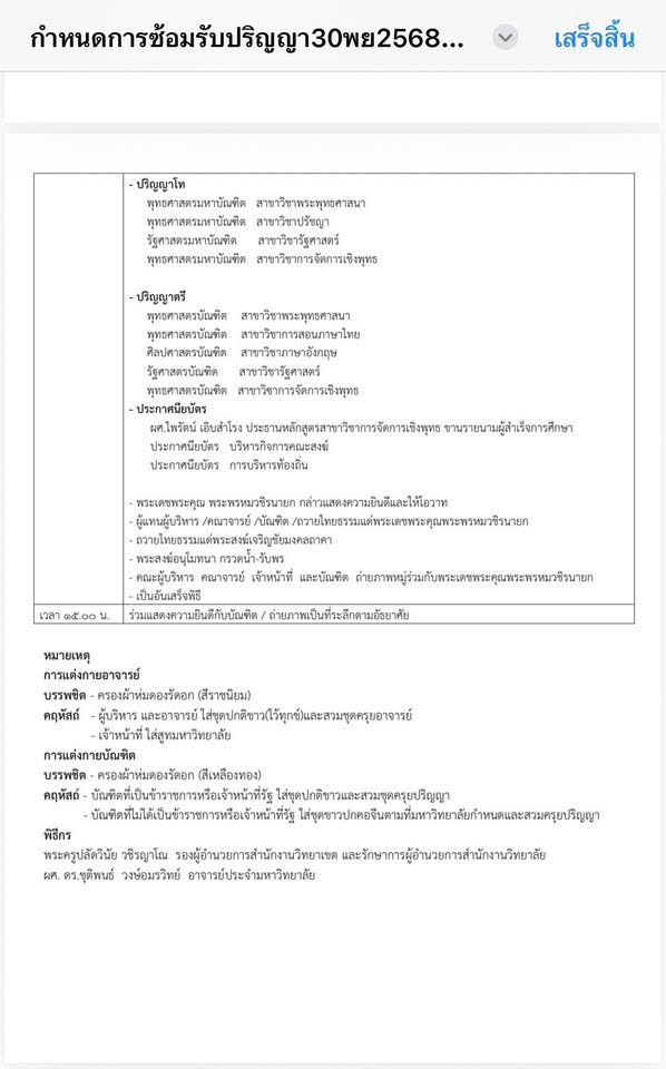 พิธีซ้อมรับปริญญาบัตร ประจำปี ๒๕๖๘