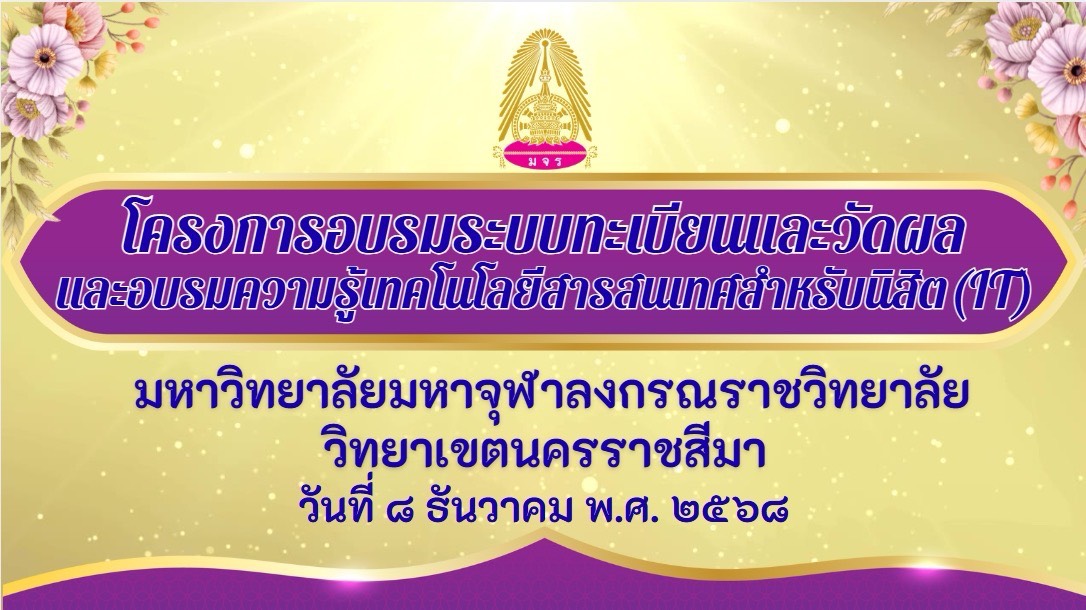 โครงการอบรมระบบทะเบียนและวัดผลและอบรมความรู้เทคโนโลยีสารสนเทศสำหรับนิสิต(IT) วันที่ ๘ ธันวาคม ๒๕๖๘