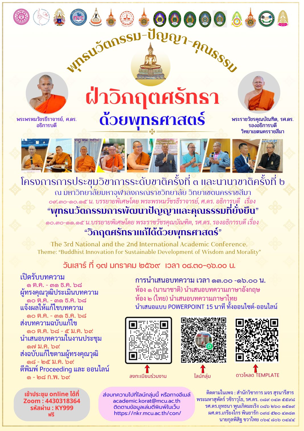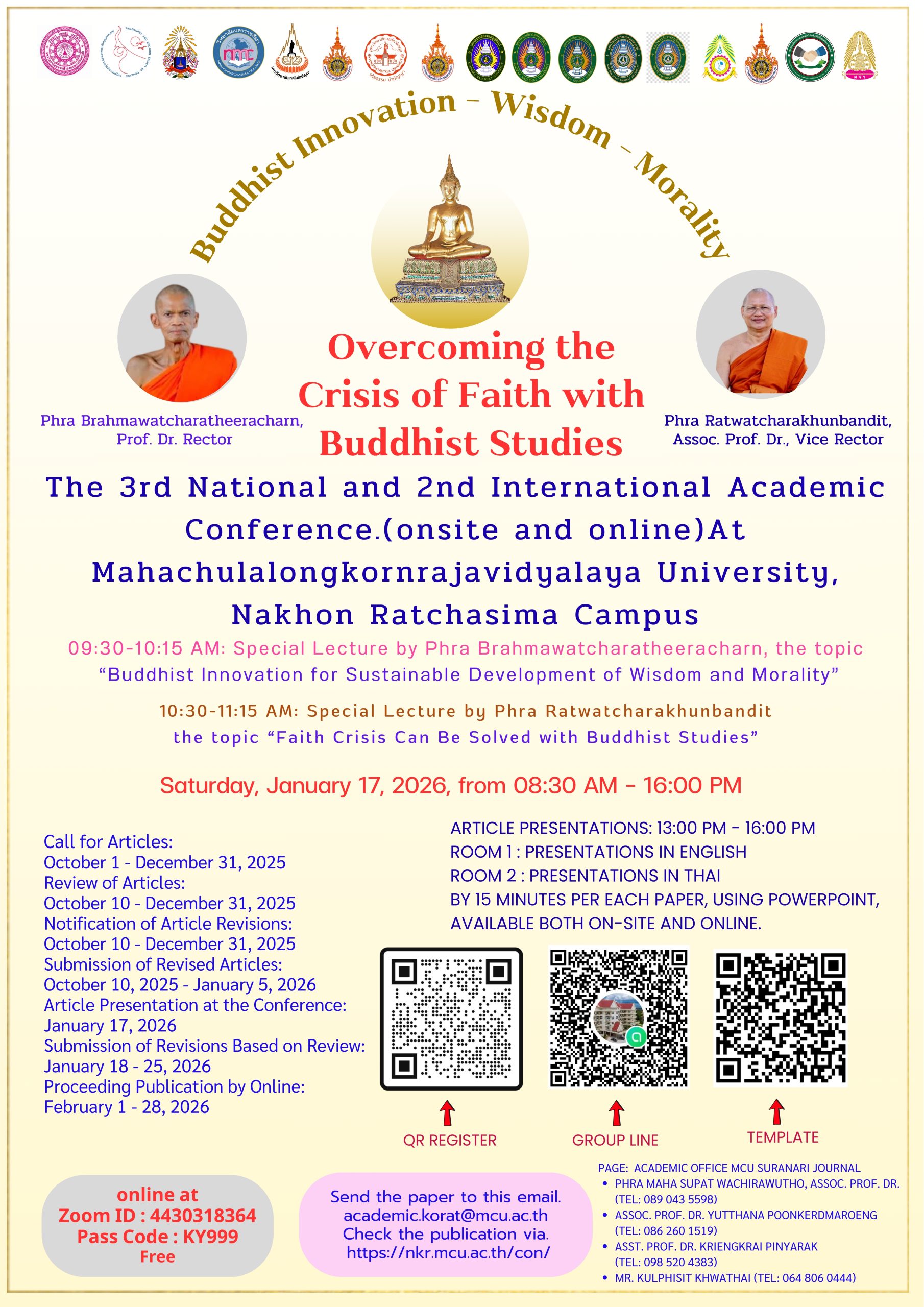 การประชุมวิชาการระดับชาติครั้งที่ ๓ และนานาชาติครั้งที่ ๒ วันเสาร์ ที่ ๑๗ มกราคม ๒๕๖๙ เวลา ๐๘.๓๐-๑๖.๐๐ น.