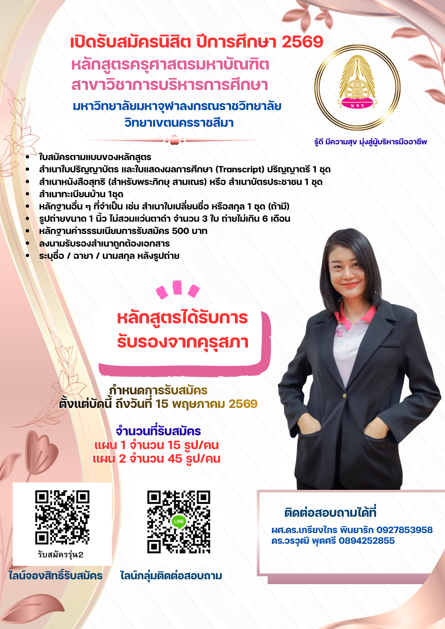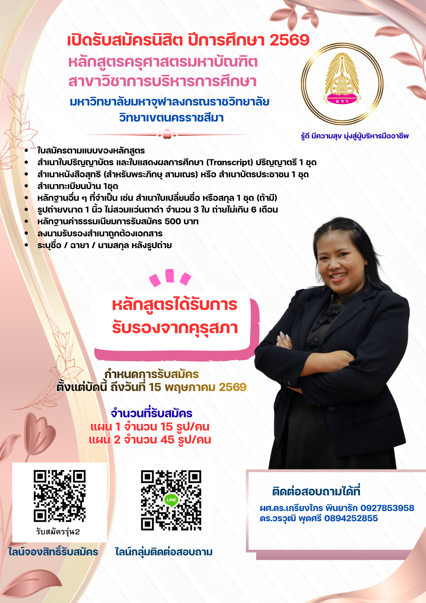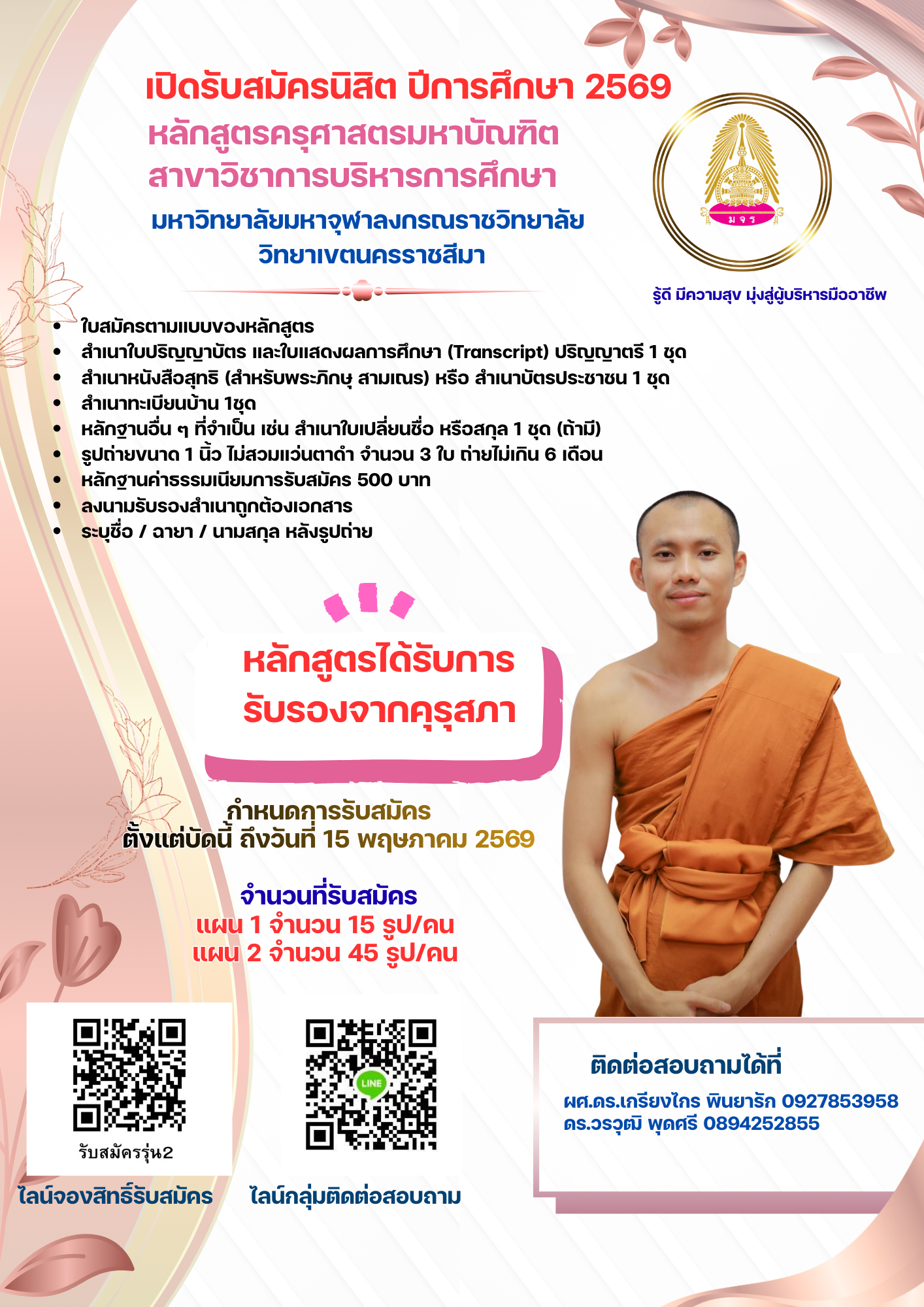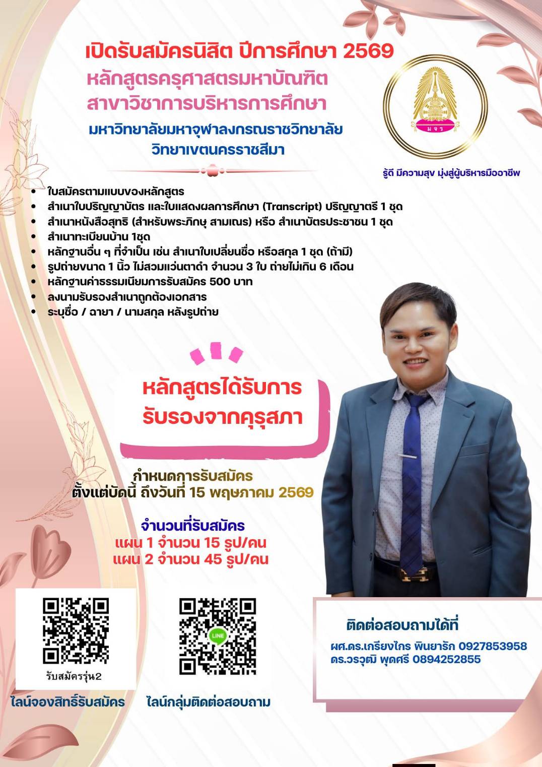 เปิดรับสมัครนิสิต ปีการศึกษา ๒๕๖๙ หลักสูตรครุศาสตรมหาบัณฑิต สาขาวิชาการบริหารการศึกษา