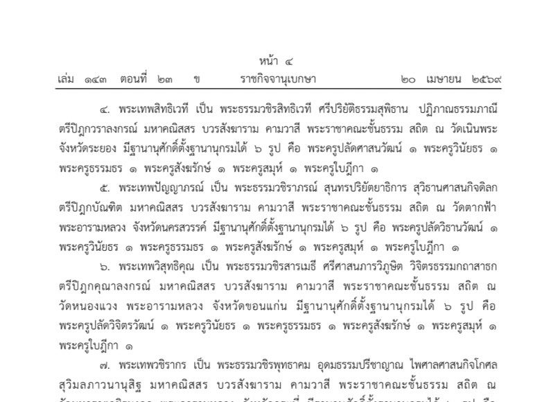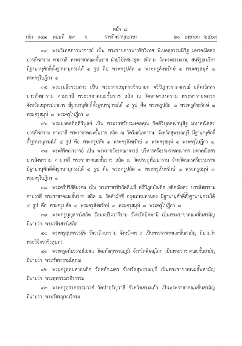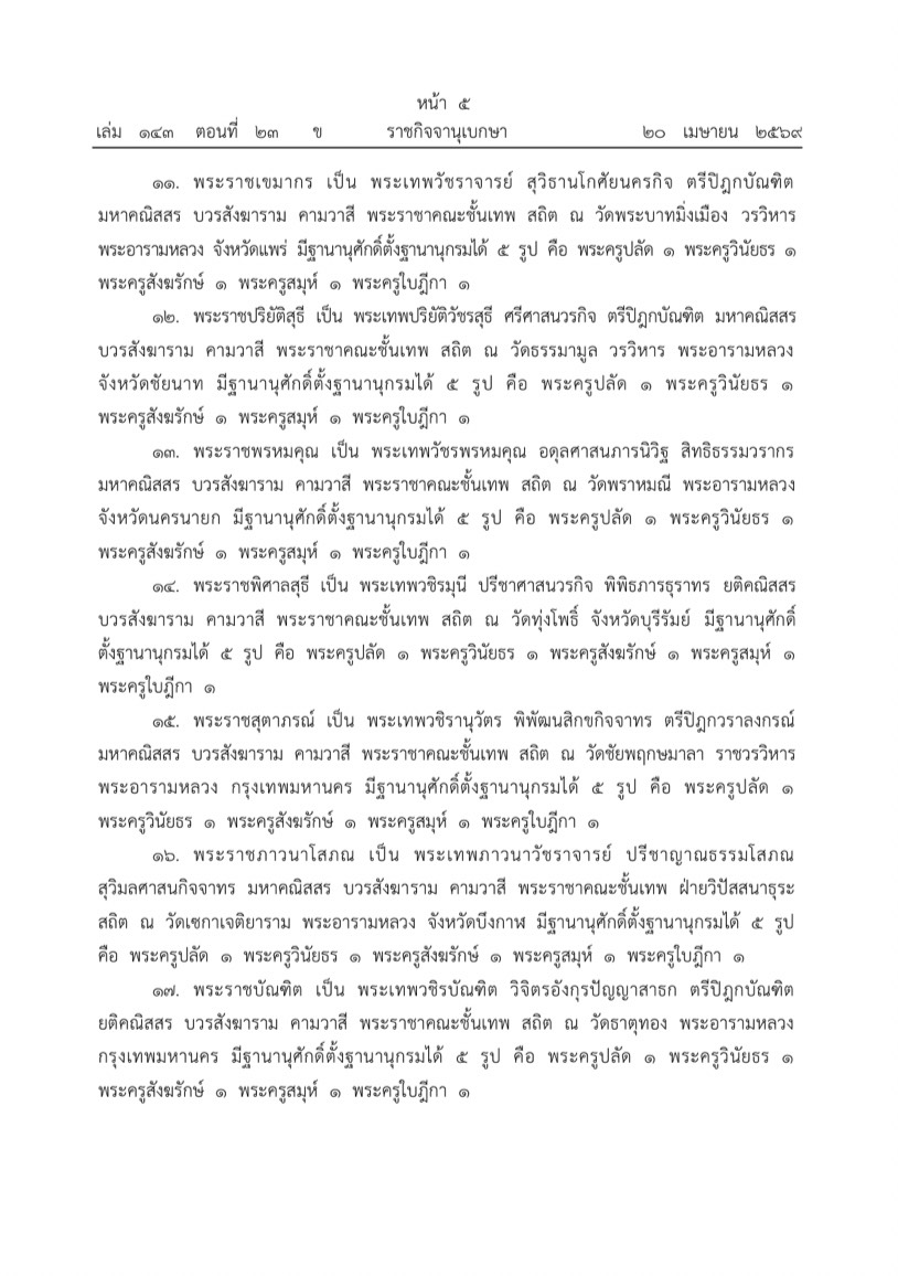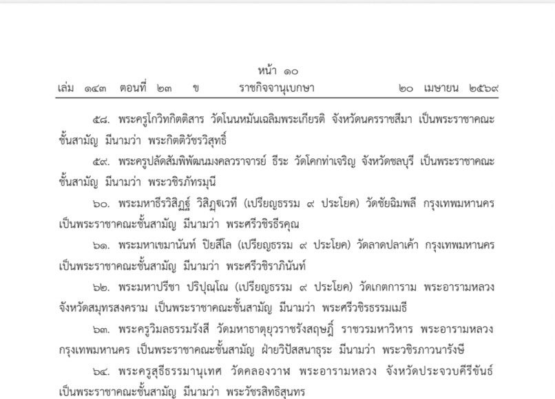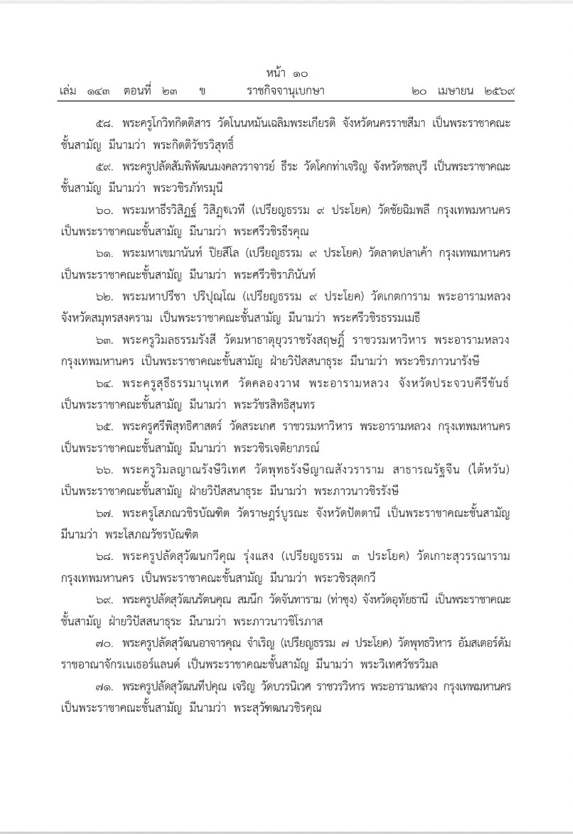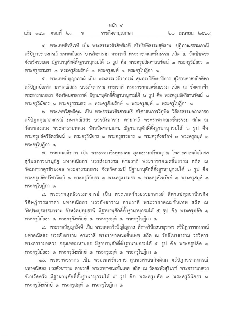 มีพระบรมราชโองการโปรดพระราชทานสัญญาบัตรตั้งสมณศักดิ์พระราชาคณะ ในโอกาสพระราชพิธีมหามงคลเฉลิมพระชนมพรรษา ๔ รอบ
