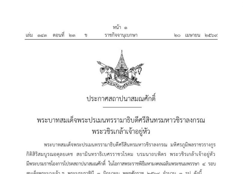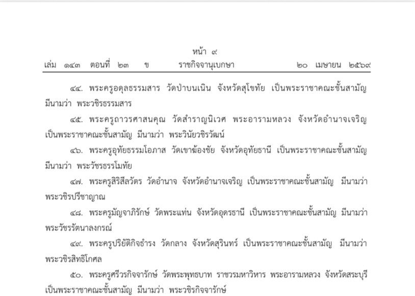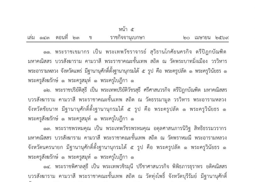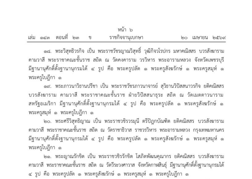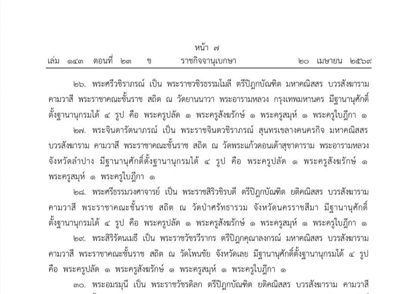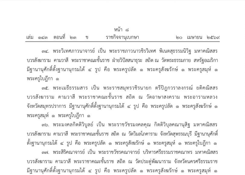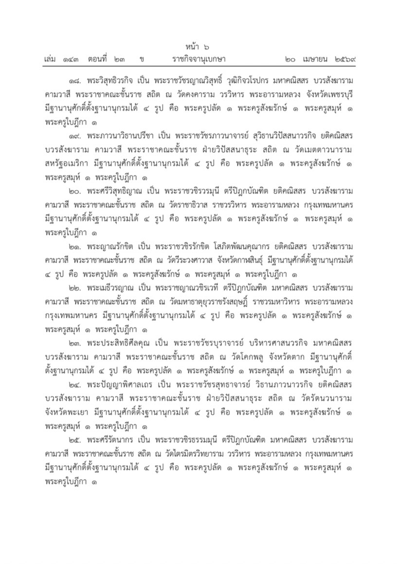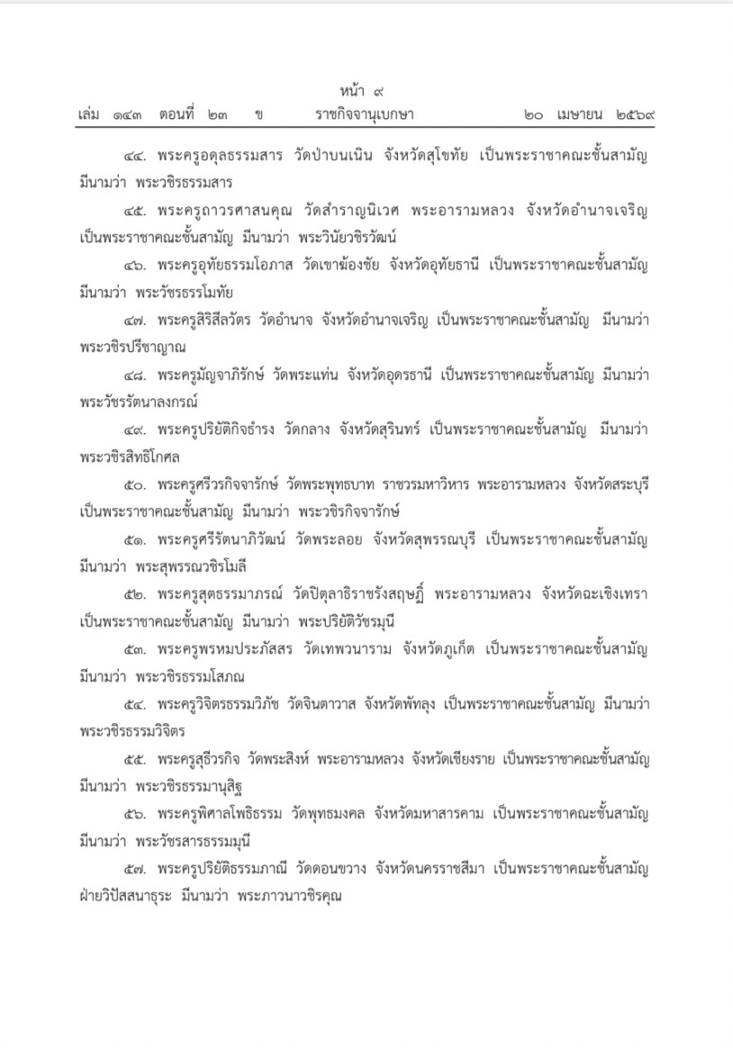 มีพระบรมราชโองการโปรดพระราชทานสัญญาบัตรตั้งสมณศักดิ์พระราชาคณะ ในโอกาสพระราชพิธีมหามงคลเฉลิมพระชนมพรรษา ๔ รอบ